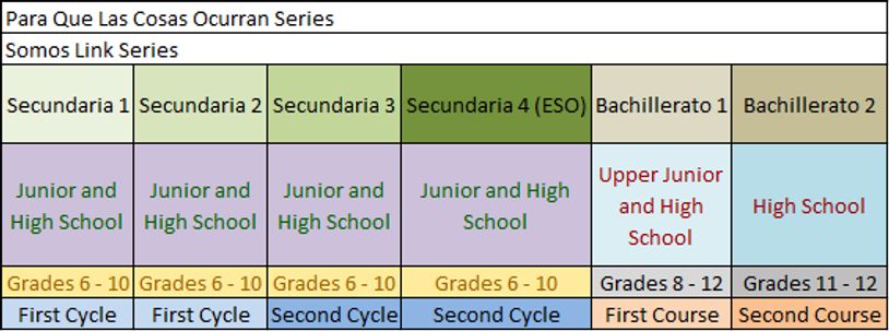 Bachillerato 2 are recommended for 11 and 12th Grade High School Levels.